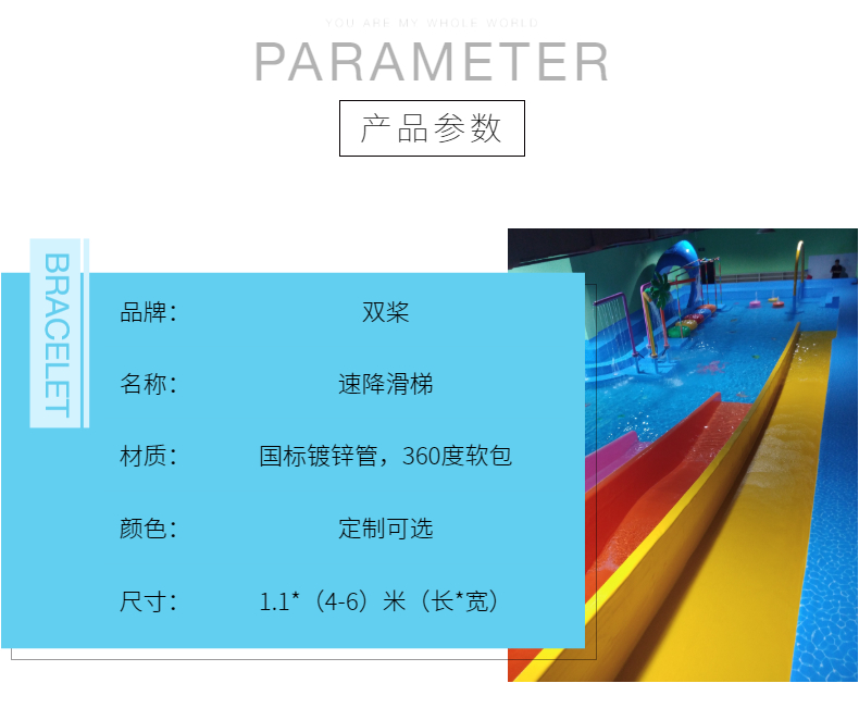 滑梯全部用扣件連接,采用360度軟包,表面沒有任何尖銳物凸出,每個部件均有多個型號和多種顏色選擇;也可以根據客戶的需要進行個性化設計、生產。本產品色彩鮮艷、不易褪色、高強度、防靜電、耐磨、耐曬、耐老化、防裂,結構安全耐用,滑梯設計巧妙、色彩搭配和諧,各個部件的巧妙結合,給孩子帶來安全、歡樂和活潑的感受。